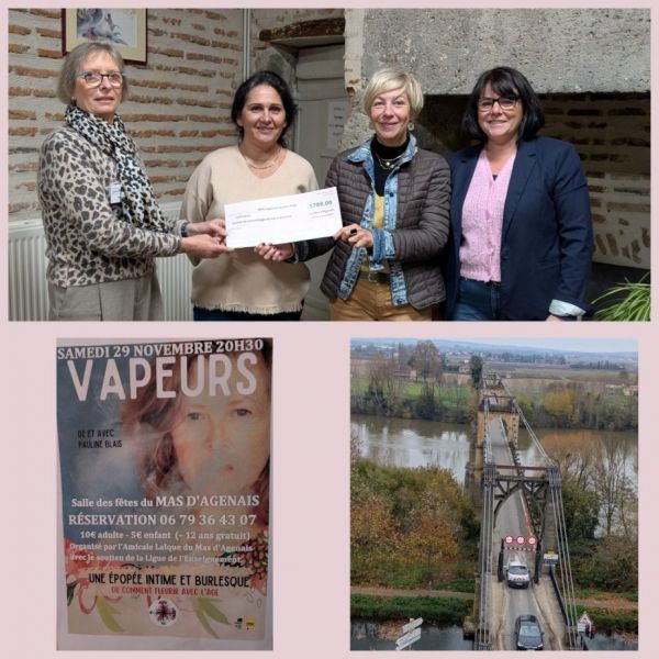 La 5ème édition d’Octobre Rose a permis de récolter la somme de 1789 €. Ce lundi 24 novembre le chèque a été remis officiellement au Comité de Cancérologie du Lot-et-Garonne.